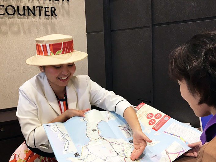 来館される皆様が、『楽しむ』を体験できるよう館内はもちろん、地域や沖縄県内の最新の情報をお伝えするのと同時に、気持ちよくご利用いただけるよう接客サービスを常に心がけ、国内外の観光客の皆様に、『日本の“おもてなし”』『沖縄のチムグクル(真心)』で、感動、満足、いただけるサービス提供してまいります。